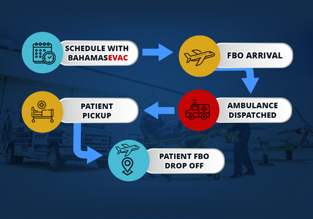Any private or commercial airline passenger flying into or out of Nassau through Jet Nassau, Odyssey, General Aviation, or LPIA may pre-book ambulance or medical support through BahamasEvac.